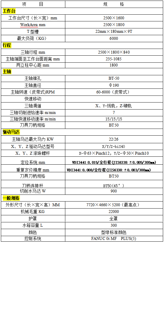 GA-2518 機械規(guī)格: